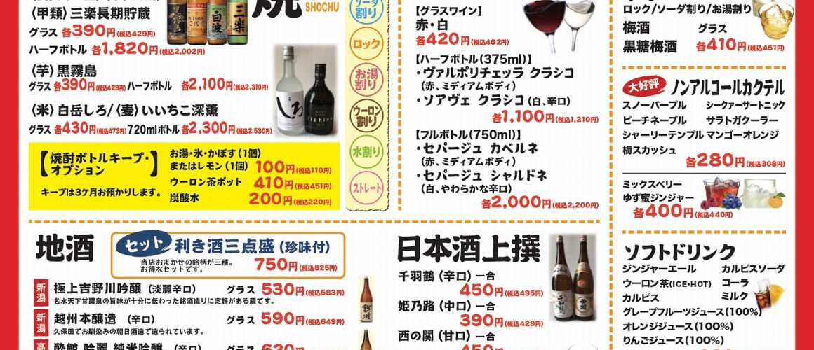 お飲みものメニュー